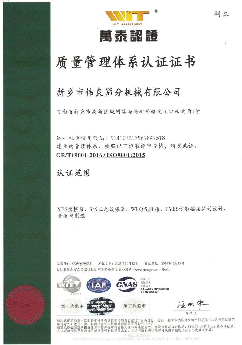 質量管理體系認證證書